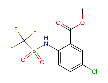 別名: 5-クロロ-2-(トリフルオロメチルスルホニルアミノ)安息香酸メチル , 2-(トリフルオロメチルスルホニルアミノ)-5-クロロ安息香酸メチル , 5-クロロ-2-[[(トリフルオロメチル)スルホニル]アミノ]安息香酸メチル , 5-クロロ-2-トリフルオロメタンスルホニルアミノ安息香酸メチル , メチル 5-クロロ-2-(トリフルオロメタンスルホンアミド)ベンゾアート , methyl 5-chloro-2-(trifluoromethanesulfonamido)benzoate ,