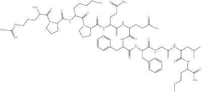 別名: L-Arg-L-Pro-L-Lys-L-Pro-L-Gln-L-Gln-L-Phe-L-Phe-Gly-L-Leu-L-Met-NH2 , L-Arg-L-Pro-L-Lys-L-Pro-L-Gln-L-Gln-L-Phe-L-Phe-Gly-L-Leu-Met-NH2 , L-Arg-L-Pro-L-Lys-L-Pro-L-Glu(NH2)-L-Glu(NH2)-L-Phe-L-Phe-Gly-L-Leu-L-Met-NH2 , Arg-Pro-Lys-Pro-Gln-Gln-Phe-Phe-Gly-Leu-Met-NH2 , (2S)-2-{[(2S)-1-[(2S)-6-アミノ-2-{[(2S)-1-[(2S)-2-アミノ-5-カルバムイミドアミドペンタノイル]ピロリジン-2-イル]ホルムアミド}ヘキサノイル]ピロリジン-2-イル]ホルムアミド}-N-[(1S)-3-カルバモイル-1-{[(1S)-1-{[(1S)-1-[({[(1S)-1-{[(1S)-1-カルバモイル-3-(メチルスルファニル)プロピル]カルバモイル}-3-メチルブチル]カルバモイル}メチル)カルバモイル]-2-フェニルエチル]カルバモイル}-2-フェニルエチル]カルバモイル}プロピル]ペンタンジアミド , (2S)-2-{[(2S)-1-[(2S)-6-amino-2-{[(2S)-1-[(2S)-2-amino-5-carbamimidamidopentanoyl]pyrrolidin-2-yl]formamido}hexanoyl]pyrrolidin-2-yl]formamido}-N-[(1S)-3-carbamoyl-1-{[(1S)-1-{[(1S)-1-[({[(1S)-1-{[(1S)-1-carbamoyl-3-(methylsulfanyl)propyl]carbamoyl}-3-methylbutyl]carbamoyl}methyl)carbamoyl]-2-phenylethyl]carbamoyl}-2-phenylethyl]carbamoyl}propyl]pentanediamide ,