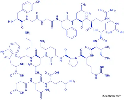 別名: L-Tyr-Gly-Gly-L-Phe-L-Leu-L-Arg-L-Arg-L-Ile-L-Arg-L-Pro-L-Lys-L-Leu-L-Lys-L-Trp-L-Asp-L-Asn-L-Gln-OH , L-Tyr-Gly-Gly-L-Phe-L-Leu-L-Arg-L-Arg-L-Ile-L-Arg-L-Pro-L-Lys-L-Leu-L-Lys-L-Trp-L-Asp-L-Asp(NH2)-L-Glu(NH2)-OH , (2S)-2-[(2S)-2-[(2S)-2-[(2S)-2-[(2S)-6-アミノ-2-[(2S)-2-[(2S)-6-アミノ-2-{[(2S)-1-[(2S)-2-[(2S,3S)-2-[(2S)-2-[(2S)-2-[(2S)-2-[(2S)-2-(2-{2-[(2S)-2-アミノ-3-(4-ヒドロキシフェニル)プロパンアミド]アセトアミド}アセトアミド)-3-フェニルプロパンアミド]-4-メチルペンタンアミド]-5-カルバムイミドアミドペンタンアミド]-5-カルバムイミドアミドペンタンアミド]-3-メチルペンタンアミド]-5-カルバムイミドアミドペンタノイル]ピロリジン-2-イル]ホルムアミド}ヘキサンアミド]-4-メチルペンタンアミド]ヘキサンアミド]-3-(1H-インドール-3-イル)プロパンアミド]-3-カルボキシプロパンアミド]-3-カルバモイルプロパンアミド]-4-カルバモイルブタン酸 , (2S)-2-[(2S)-2-[(2S)-2-[(2S)-2-[(2S)-6-amino-2-[(2S)-2-[(2S)-6-amino-2-{[(2S)-1-[(2S)-2-[(2S,3S)-2-[(2S)-2-[(2S)-2-[(2S)-2-[(2S)-2-(2-{2-[(2S)-2-amino-3-(4-hydroxyphenyl)propanamido]acetamido}acetamido)-3-phenylpropanamido]-4-methylpentanamido]-5-carbamimidamidopentanamido]-5-carbamimidamidopentanamido]-3-methylpentanamido]-5-carbamimidamidopentanoyl]pyrrolidin-2-yl]formamido}hexanamido]-4-methylpentanamido]hexanamido]-3-(1H-indol-3-yl)propanamido]-3-carboxypropanamido]-3-carbamoylpropanamido]-4-carbamoylbutanoic acid ,