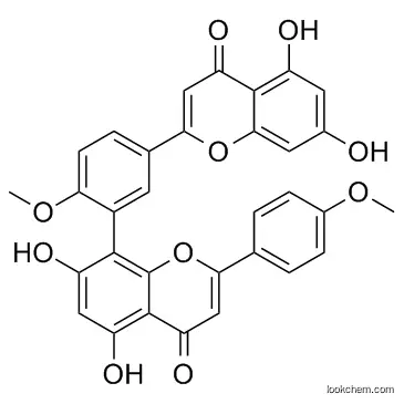 別名: 8-[5-(5,7-ジヒドロキシ-4-オキソ-4H-1-ベンゾピラン-2-イル)-2-メトキシフェニル]-5,7-ジヒドロキシ-2-(4-メトキシフェニル)-4H-1-ベンゾピラン-4-オン , 2-(4-メトキシフェニル)-5,7-ジヒドロキシ-8-[2-メトキシ-5-(4-オキソ-5,7-ジヒドロキシ-4H-1-ベンゾピラン-2-イル)フェニル]-4H-1-ベンゾピラン-4-オン , 2-(4-メトキシフェニル)-8-[6-メトキシ-3-(4-オキソ-5,7-ジヒドロキシ-4H-1-ベンゾピラン-2-イル)フェニル]-5,7-ジヒドロキシ-4H-1-ベンゾピラン-4-オン , 8-[5-(5,7-ジヒドロキシ-4-オキソ-4H-クロメン-2-イル)-2-メトキシフェニル]-5,7-ジヒドロキシ-2-(4-メトキシフェニル)-4H-クロメン-4-オン , 8-[5-(5,7-dihydroxy-4-oxo-4H-chromen-2-yl)-2-methoxyphenyl]-5,7-dihydroxy-2-(4-methoxyphenyl)-4H-chromen-4-one ,