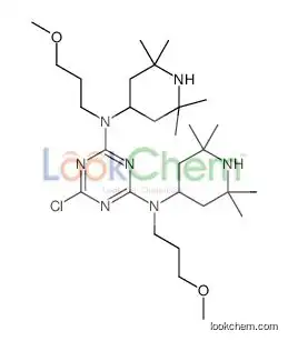 別名: 6-クロロ-N,N′-ビス(3-メトキシプロピル)-N,N′-ビス(2,2,6,6-テトラメチル-4-ピペリジニル)-1,3,5-トリアジン-2,4-ジアミン , 6-クロロ-N2,N4-ビス(3-メトキシプロピル)-N2,N4-ビス(2,2,6,6-テトラメチルピペリジン-4-イル)-1,3,5-トリアジン-2,4-ジアミン , 6-chloro-N2,N4-bis(3-methoxypropyl)-N2,N4-bis(2,2,6,6-tetramethylpiperidin-4-yl)-1,3,5-triazine-2,4-diamine ,