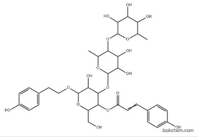 別名: 2-(4-ヒドロキシフェニル)エチル3-O-(4-O-α-L-ラムノピラノシル-α-L-ラムノピラノシル)-4-O-[(E)-3-(4-ヒドロキシフェニル)プロペノイル]-β-D-グルコピラノシド , (2R,3R,4R,5R,6R)-4-{[(2S,3R,4S,5R,6S)-3,4-ジヒドロキシ-6-メチル-5-{[(2S,3R,4R,5R,6S)-3,4,5-トリヒドロキシ-6-メチルオキサン-2-イル]オキシ}オキサン-2-イル]オキシ}-5-ヒドロキシ-2-(ヒドロキシメチル)-6-[2-(4-ヒドロキシフェニル)エトキシ]オキサン-3-イル (2E)-3-(4-ヒドロキシフェニル)プロパ-2-エノアート , (2R,3R,4R,5R,6R)-4-{[(2S,3R,4S,5R,6S)-3,4-dihydroxy-6-methyl-5-{[(2S,3R,4R,5R,6S)-3,4,5-trihydroxy-6-methyloxan-2-yl]oxy}oxan-2-yl]oxy}-5-hydroxy-2-(hydroxymethyl)-6-[2-(4-hydroxyphenyl)ethoxy]oxan-3-yl (2E)-3-(4-hydroxyphenyl)prop-2-enoate ,