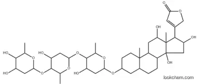 別名: 3β-[4-O-[4-O-(2,6-ジデオキシ-β-D-ribo-ヘキソピラノシル)-2,6-ジデオキシ-β-D-ribo-ヘキソピラノシル]-2,6-ジデオキシ-β-D-ribo-ヘキソピラノシルオキシ]-12β,14,16β-トリヒドロキシ-5β-カルダ-20(22)-エノリド , 3β-[[4-O-[4-O-(2,6-ジデオキシ-β-D-ribo-ヘキソピラノシル)-2,6-ジデオキシ-β-D-ribo-ヘキソピラノシル]-2,6-ジデオキシ-β-D-ribo-ヘキソピラノシル]オキシ]-12β,14,16β-トリヒドロキシ-5β,14β-カルダ-20(22)-エノリド , 4-[(1R,2S,3aS,3bR,5aR,7S,9aS,9bS,11R,11aS)-7-{[(2R,4S,5S,6R)-5-{[(2S,4S,5S,6R)-5-{[(2S,4S,5S,6R)-4,5-ジヒドロキシ-6-メチルオキサン-2-イル]オキシ}-4-ヒドロキシ-6-メチルオキサン-2-イル]オキシ}-4-ヒドロキシ-6-メチルオキサン-2-イル]オキシ}-2,3a,11-トリヒドロキシ-9a,11a-ジメチル-ヘキサデカヒドロ-1H-シクロペンタ[a]フェナントレン-1-イル]-2,5-ジヒドロフラン-2-オン , 4-[(1R,2S,3aS,3bR,5aR,7S,9aS,9bS,11R,11aS)-7-{[(2R,4S,5S,6R)-5-{[(2S,4S,5S,6R)-5-{[(2S,4S,5S,6R)-4,5-dihydroxy-6-methyloxan-2-yl]oxy}-4-hydroxy-6-methyloxan-2-yl]oxy}-4-hydroxy-6-methyloxan-2-yl]oxy}-2,3a,11-trihydroxy-9a,11a-dimethyl-hexadecahydro-1H-cyclopenta[a]phenanthren-1-yl]-2,5-dihydrofuran-2-one ,