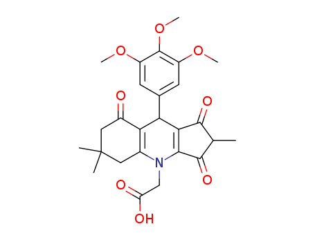 別名: 1,2,3,5,6,7,8,9-オクタヒドロ-9-(3,4,5-トリメトキシフェニル)-2,6,6-トリメチル-1,3,8-トリオキソ-4H-シクロペンタ[b]キノリン-4-酢酸 , 2-[2,6,6-トリメチル-1,3,8-トリオキソ-9-(3,4,5-トリメトキシフェニル)-1H,2H,3H,4H,5H,6H,7H,8H,9H-シクロペンタ[b]キノリン-4-イル]酢酸 , 2-[2,6,6-trimethyl-1,3,8-trioxo-9-(3,4,5-trimethoxyphenyl)-1H,2H,3H,4H,5H,6H,7H,8H,9H-cyclopenta[b]quinolin-4-yl]acetic acid ,