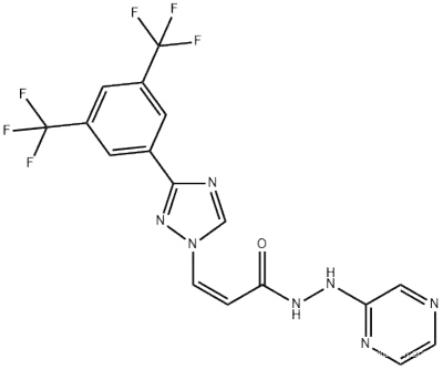 別名: (Z)-3-[3-[3,5-ビス(トリフルオロメチル)フェニル]-1H-1,2,4-トリアゾール-1-イル]-N′-(2-ピラジニル)アクリロヒドラジド , (2Z)-3-{3-[3,5-ビス(トリフルオロメチル)フェニル]-1H-1,2,4-トリアゾール-1-イル}-N'-(ピラジン-2-イル)プロパ-2-エンヒドラジド , (2Z)-3-{3-[3,5-bis(trifluoromethyl)phenyl]-1H-1,2,4-triazol-1-yl}-N'-(pyrazin-2-yl)prop-2-enehydrazide ,