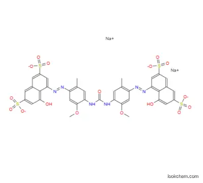 別名: 4,4′-[カルボニルビス[イミノ(5-メトキシ-2-メチル-4,1-フェニレン)アゾ]]ビス[5-ヒドロキシ-2,7-ナフタレンジスルホン酸]四ナトリウム , 4,4′-[カルボニルビス[イミノ(2-メチル-5-メトキシ-4,1-フェニレン)アゾ]]ビス[5-ヒドロキシナフタレン-2,7-ビス(スルホン酸ナトリウム)] , 4,4′-[カルボニルビスイミノビス(2-メチル-5-メトキシ-4,1-フェニレン)ビスアゾ]ビス(5-ヒドロキシ-2,7-ナフタレンジスルホン酸ジナトリウム) , 4,4′-[カルボニルビス[イミノ(2-メチル-5-メトキシベンゼン-4,1-ジイル)アゾ]]ビス(5-ヒドロキシナフタレン-2,7-ジスルホン酸ジナトリウム) , 2,7-二ナトリウム 4-ヒドロキシ-5-{2-[4-({[4-(2-{8-ヒドロキシ-3,6-ビス[(ソジオオキシ)スルホニル]ナフタレン-1-イル}ジアゼン-1-イル)-2-メトキシ-5-メチルフェニル]カルバモイル}アミノ)-5-メトキシ-2-メチルフェニル]ジアゼン-1-イル}ナフタレン-2,7-ジスルホナート , 2,7-disodium 4-hydroxy-5-{2-[4-({[4-(2-{8-hydroxy-3,6-bis[(sodiooxy)sulfonyl]naphthalen-1-yl}diazen-1-yl)-2-methoxy-5-methylphenyl]carbamoyl}amino)-5-methoxy-2-methylphenyl]diazen-1-yl}naphthalene-2,7-disulfonate ,