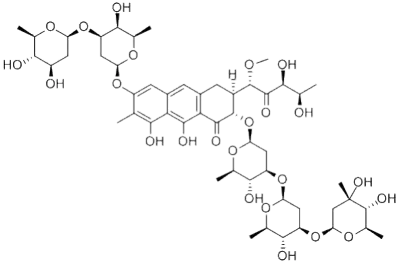 別名: (2S)-2β-[3-O-[3-O-(2,6-ジデオキシ-3-メチル-β-D-アロピラノシル)-2,6-ジデオキシ-β-D-グルコピラノシル]-2,6-ジデオキシ-β-D-グルコピラノシルオキシ]-6-[3-O-(2,6-ジデオキシ-β-D-グルコピラノシル)-2,6-ジデオキシ-β-D-ガラクトピラノシルオキシ]-3,4-ジヒドロ-8,9-ジヒドロキシ-3α-[(1S,3S,4R)-3,4-ジヒドロキシ-1-メトキシ-2-オキソペンチル]-7-メチルアントラセン-1(2H)-オン , (2S,3S)-3-[(1S,3S,4R)-3,4-ジヒドロキシ-1-メトキシ-2-オキソペンチル]-2-{[(2S,4R,5R,6R)-4-{[(2S,4R,5R,6R)-4-{[(2S,4S,5R,6R)-4,5-ジヒドロキシ-4,6-ジメチルオキサン-2-イル]オキシ}-5-ヒドロキシ-6-メチルオキサン-2-イル]オキシ}-5-ヒドロキシ-6-メチルオキサン-2-イル]オキシ}-6-{[(2S,4R,5S,6R)-4-{[(2S,4R,5S,6R)-4,5-ジヒドロキシ-6-メチルオキサン-2-イル]オキシ}-5-ヒドロキシ-6-メチルオキサン-2-イル]オキシ}-8,9-ジヒドロキシ-7-メチル-1,2,3,4-テトラヒドロアントラセン-1-オン , (2S,3S)-3-[(1S,3S,4R)-3,4-dihydroxy-1-methoxy-2-oxopentyl]-2-{[(2S,4R,5R,6R)-4-{[(2S,4R,5R,6R)-4-{[(2S,4S,5R,6R)-4,5-dihydroxy-4,6-dimethyloxan-2-yl]oxy}-5-hydroxy-6-methyloxan-2-yl]oxy}-5-hydroxy-6-methyloxan-2-yl]oxy}-6-{[(2S,4R,5S,6R)-4-{[(2S,4R,5S,6R)-4,5-dihydroxy-6-methyloxan-2-yl]oxy}-5-hydroxy-6-methyloxan-2-yl]oxy}-8,9-dihydroxy-7-methyl-1,2,3,4-tetrahydroanthracen-1-one ,