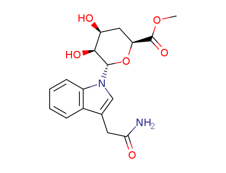 別名: 1-[3-(2-アミノ-2-オキソエチル)-1H-インドール-1-イル]-1,4-ジデオキシ-α-D-lyxo-ヘキソピラヌロン酸メチル , メチル (2S,4S,5S,6S)-6-[3-(カルバモイルメチル)-1H-インドール-1-イル]-4,5-ジヒドロキシオキサン-2-カルボキシラート , methyl (2S,4S,5S,6S)-6-[3-(carbamoylmethyl)-1H-indol-1-yl]-4,5-dihydroxyoxane-2-carboxylate ,