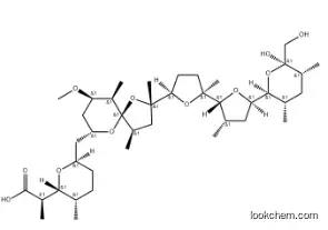 別名: ニゲリシンナトリウム , ナトリウム (2R)-2-[(2R,3S,6R)-6-{[(2S,4R,5R,7R,9R,10R)-2-[(2S,2'R,3'S,5R,5'R)-5'-[(2S,3S,5R,6R)-6-ヒドロキシ-6-(ヒドロキシメチル)-3,5-ジメチルオキサン-2-イル]-2,3'-ジメチル-[2,2'-ビオキソラン]-5-イル]-9-メトキシ-2,4,10-トリメチル-1,6-ジオキサスピロ[4.5]デカン-7-イル]メチル}-3-メチルオキサン-2-イル]プロパノアート , sodium (2R)-2-[(2R,3S,6R)-6-{[(2S,4R,5R,7R,9R,10R)-2-[(2S,2'R,3'S,5R,5'R)-5'-[(2S,3S,5R,6R)-6-hydroxy-6-(hydroxymethyl)-3,5-dimethyloxan-2-yl]-2,3'-dimethyl-[2,2'-bioxolan]-5-yl]-9-methoxy-2,4,10-trimethyl-1,6-dioxaspiro[4.5]decan-7-yl]methyl}-3-methyloxan-2-yl]propanoate ,