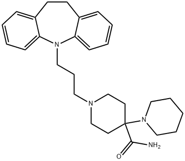 別名: 1′-[3-(10,11-ジヒドロ-5H-ジベンゾ[b,f]アゼピン-5-イル)プロピル](1,4′-ビピペリジン)-4′-カルボアミド , 10,11-ジヒドロ-5-[3-(4-ピペリジノ-4-カルバモイルピペリジノ)プロピル]-5H-ジベンゾ[b,f]アゼピン , 1-[3-(10,11-ジヒドロ-5H-ジベンゾ[b,f]アゼピン-5-イル)プロピル]-4-(1-ピペリジニル)ピペリジン-4-カルボアミド , 1′-[3-(10,11-ジヒドロ-5H-ジベンゾ[b,f]アゼピン-5-イル)プロピル](1,4′-ビピペリジン)-4′-カルボキサミド , 1'-(3-{2-アザトリシクロ[9.4.0.03,8]ペンタデカ-1(15),3,5,7,11,13-ヘキサエン-2-イル}プロピル)-[1,4'-ビピペリジン]-4'-カルボキサミド , 1'-(3-{2-azatricyclo[9.4.0.03,8]pentadeca-1(15),3,5,7,11,13-hexaen-2-yl}propyl)-[1,4'-bipiperidine]-4'-carboxamide ,
