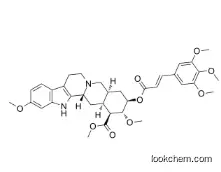 別名: (3β,20α)-11,17α-ジメトキシ-18β-[[1-オキソ-3-(3,4,5-トリメトキシフェニル)-2-プロペニル]オキシ]ヨヒンバン-16β-カルボン酸メチル , (3β,20α)-11,17α-ジメトキシ-18β-[1-オキソ-3-(3,4,5-トリメトキシフェニル)-2-プロペニルオキシ]ヨヒンバン-16β-カルボン酸メチル , メチル (1R,15S,17R,18R,19S,20S)-6,18-ジメトキシ-17-{[3-(3,4,5-トリメトキシフェニル)プロパ-2-エノイル]オキシ}-3,13-ジアザペンタシクロ[11.8.0.02,10.04,9.015,20]ヘンイコサ-2(10),4,6,8-テトラエン-19-カルボキシラート , methyl (1R,15S,17R,18R,19S,20S)-6,18-dimethoxy-17-{[3-(3,4,5-trimethoxyphenyl)prop-2-enoyl]oxy}-3,13-diazapentacyclo[11.8.0.02,10.04,9.015,20]henicosa-2(10),4,6,8-tetraene-19-carboxylate ,