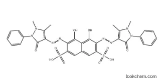 別名: 3,6-ビス[(2,3-ジヒドロ-1,5-ジメチル-3-オキソ-2-フェニル-1H-ピラゾール-4-イル)アゾ]-4,5-ジヒドロキシ-2,7-ナフタレンジスルホン酸 , 4,5-ジヒドロキシ-3,6-ビス[(1,5-ジメチル-2-フェニル-3-オキソ-1H-ピラゾール-4-イル)アゾ]-2,7-ナフタレンジスルホン酸 , 3,6-ビス[2-(1,5-ジメチル-3-オキソ-2-フェニル-2,3-ジヒドロ-1H-ピラゾール-4-イル)ジアゼン-1-イル]-4,5-ジヒドロキシナフタレン-2,7-ジスルホン酸 , 3,6-bis[2-(1,5-dimethyl-3-oxo-2-phenyl-2,3-dihydro-1H-pyrazol-4-yl)diazen-1-yl]-4,5-dihydroxynaphthalene-2,7-disulfonic acid ,