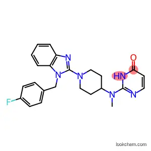別名: 2-[[1-[1-(4-フルオロベンジル)-1H-ベンゾイミダゾール-2-イル]ピペリジン-4-イル](メチル)アミノ]ピリミジン-4(3H)-オン , 2-[(1-{1-[(4-フルオロフェニル)メチル]-1H-1,3-ベンゾジアゾール-2-イル}ピペリジン-4-イル)(メチル)アミノ]-3,4-ジヒドロピリミジン-4-オン , 2-[(1-{1-[(4-fluorophenyl)methyl]-1H-1,3-benzodiazol-2-yl}piperidin-4-yl)(methyl)amino]-3,4-dihydropyrimidin-4-one ,