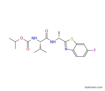 別名: N-[(1S)-1-[[(1R)-1-(6-フルオロベンゾチアゾール-2-イル)エチル]カルバモイル]-2-メチルプロピル]カルバミド酸イソプロピル , N-[(S)-1-[[[(R)-1-(6-フルオロベンゾチアゾール-2-イル)エチル]アミノ]カルボニル]-2-メチルプロピル]カルバミド酸イソプロピル , N-[(1R)-1-(6-フルオロベンゾチアゾール-2-イル)エチル]-Nα-(イソプロポキシカルボニル)-L-バリンアミド , N-[(S)-2-[(R)-1-(6-フルオロベンゾチアゾール-2-イル)エチルアミノ]-1-イソプロピル-2-オキソエチル]カルバミド酸イソプロピル , N-[(R)-1-(6-フルオロベンゾチアゾール-2-イル)エチル]-Nα-(イソプロポキシカルボニル)-L-バリンアミド , プロパン-2-イル N-[(1S)-1-{[(1R)-1-(6-フルオロ-1,3-ベンゾチアゾール-2-イル)エチル]カルバモイル}-2-メチルプロピル]カルバマート , propan-2-yl N-[(1S)-1-{[(1R)-1-(6-fluoro-1,3-benzothiazol-2-yl)ethyl]carbamoyl}-2-methylpropyl]carbamate ,