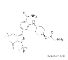 別名: グリシン(1α)-4β-[[2-カルバモイル-5-[4,5,6,7-テトラヒドロ-6,6-ジメチル-4-オキソ-3-(トリフルオロメチル)-1H-インダゾール-1-イル]フェニル]アミノ]シクロヘキシル , (1r,4r)-4-({2-カルバモイル-5-[6,6-ジメチル-4-オキソ-3-(トリフルオロメチル)-4,5,6,7-テトラヒドロ-1H-インダゾール-1-イル]フェニル}アミノ)シクロヘキシル 2-アミノアセタート , (1r,4r)-4-({2-carbamoyl-5-[6,6-dimethyl-4-oxo-3-(trifluoromethyl)-4,5,6,7-tetrahydro-1H-indazol-1-yl]phenyl}amino)cyclohexyl 2-aminoacetate ,
