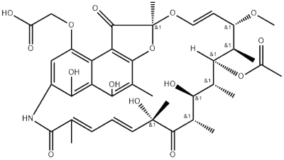 別名: 4-O-カルボキシメチル-21-デオキシ-20-ヒドロキシ-21-オキソリファマイシン , 2-{[(7S,11S,12R,13S,14R,15S,16S,18R,19Z,21Z)-13-(アセチルオキシ)-2,15,18,29-テトラヒドロキシ-11-メトキシ-3,7,12,14,16,18,22-ヘプタメチル-6,17,23-トリオキソ-8,30-ジオキサ-24-アザテトラシクロ[23.3.1.14,7.05,28]トリアコンタ-1,3,5(28),9,19,21,25(29),26-オクタエン-27-イル]オキシ}酢酸 , 2-{[(7S,11S,12R,13S,14R,15S,16S,18R,19Z,21Z)-13-(acetyloxy)-2,15,18,29-tetrahydroxy-11-methoxy-3,7,12,14,16,18,22-heptamethyl-6,17,23-trioxo-8,30-dioxa-24-azatetracyclo[23.3.1.14,7.05,28]triaconta-1,3,5(28),9,19,21,25(29),26-octaen-27-yl]oxy}acetic acid ,